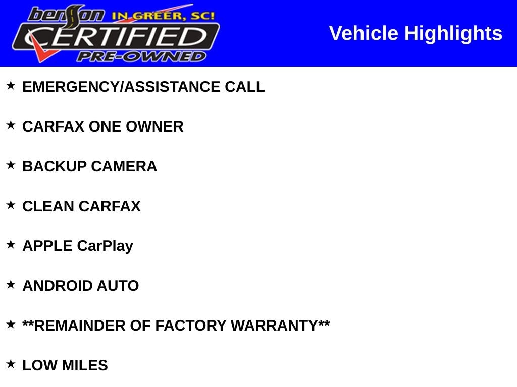 * Vehicles Up to 75,000 Miles and/or 5 Model Years. 24-Hour Towing & Roadside Assistance, Car Rental Allowance, CARFAX® Vehicle History ReportTM and an Introductory 3-month Subscription to SiriusXM® Satellite Radio & Certified Warranty Upgrades