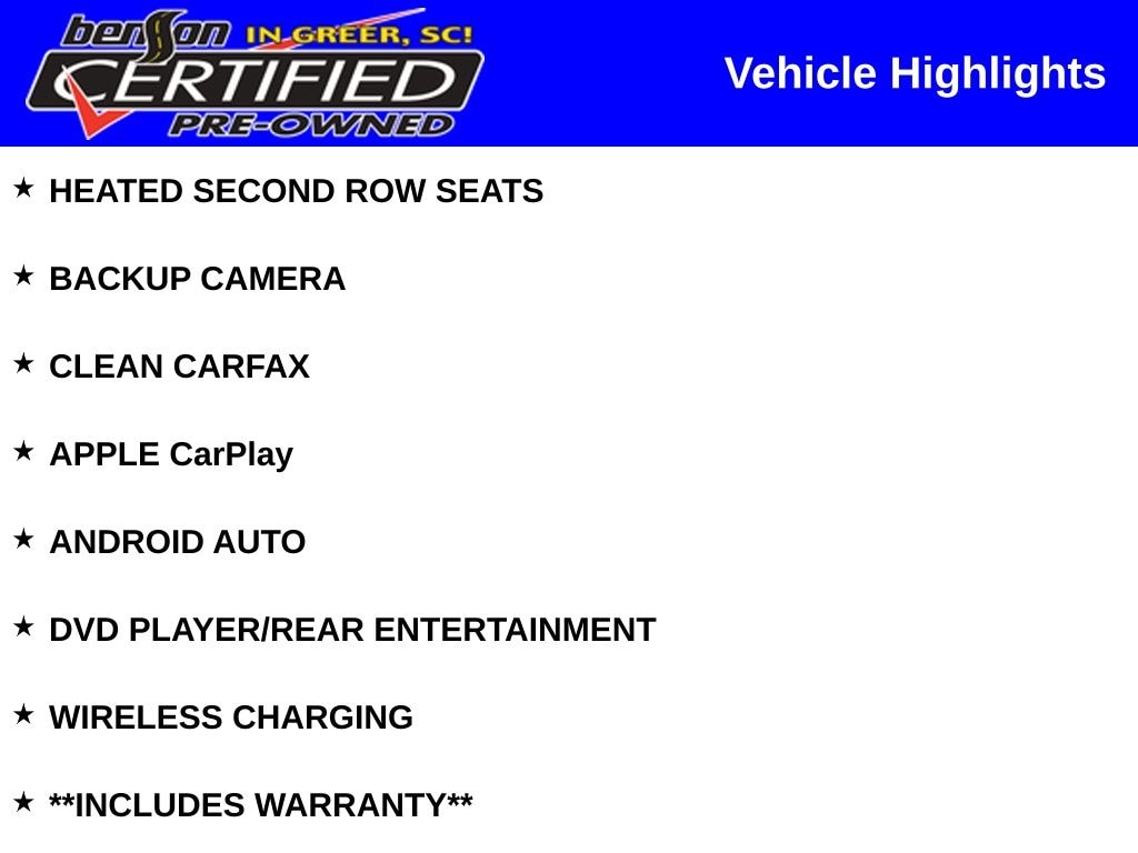 PRICED BELOW J.D.POWER RETAIL PRICE OF $40,950. BLIND SPOT AND CROSS PATH DETECTION, LANE DEPARTURE WARNING, LANE KEEP ASSIST, FORWARD COLLISION WARNING, EMERGENCY/ASSISTANCE CALL, LEATHER INTERIOR, NAVIGATION, MOONROOF/SUNROOF, HEATED SECOND ROW SEATS, BACKUP CAMERA, CLEAN CARFAX, APPLE CarPlay, ANDROID AUTO, DVD PLAYER/REAR ENTERTAINMENT, WIRELESS CHARGING, **INCLUDES WARRANTY**, LOW MILES, RECENT TRADE IN, POWER LIFTGATE, THIRD ROW SEATING, 4WD.